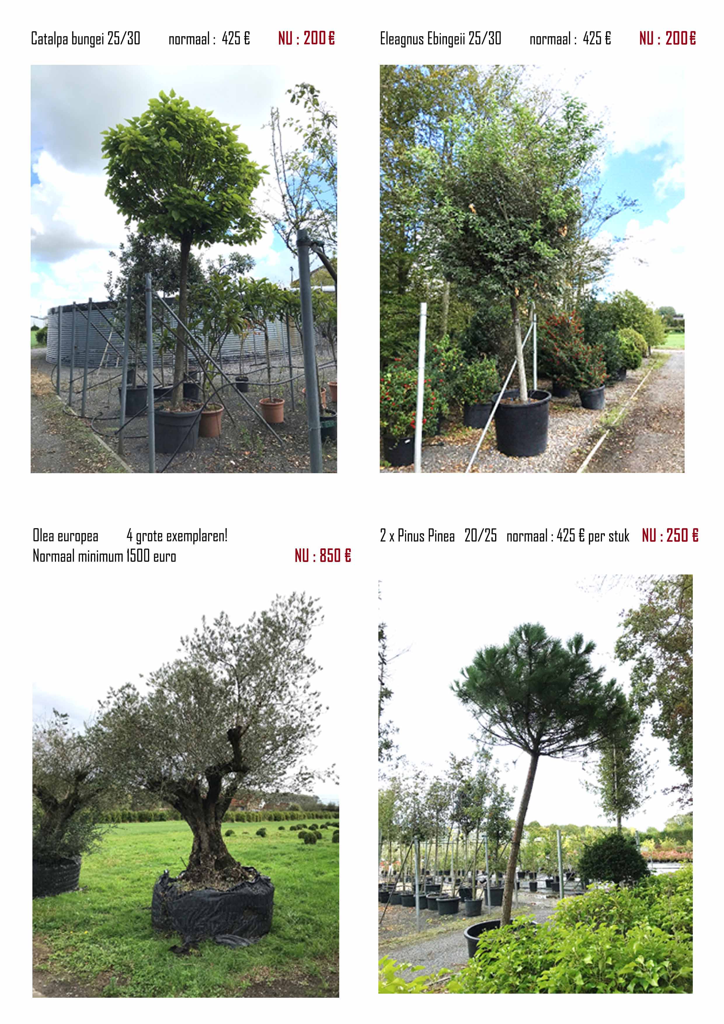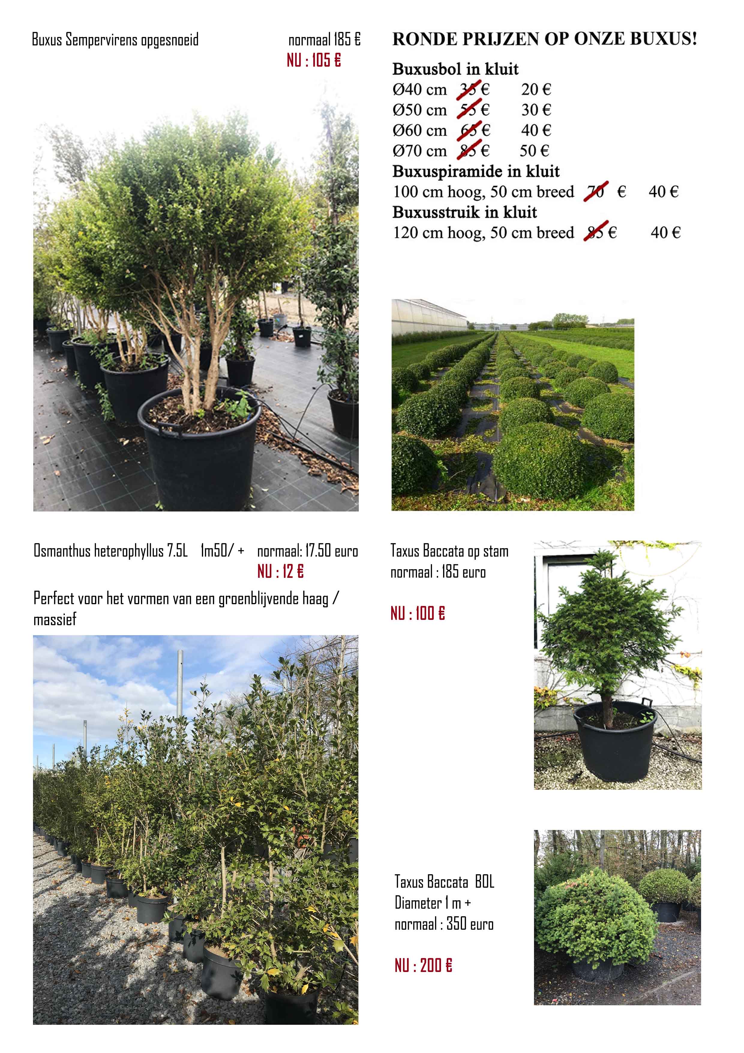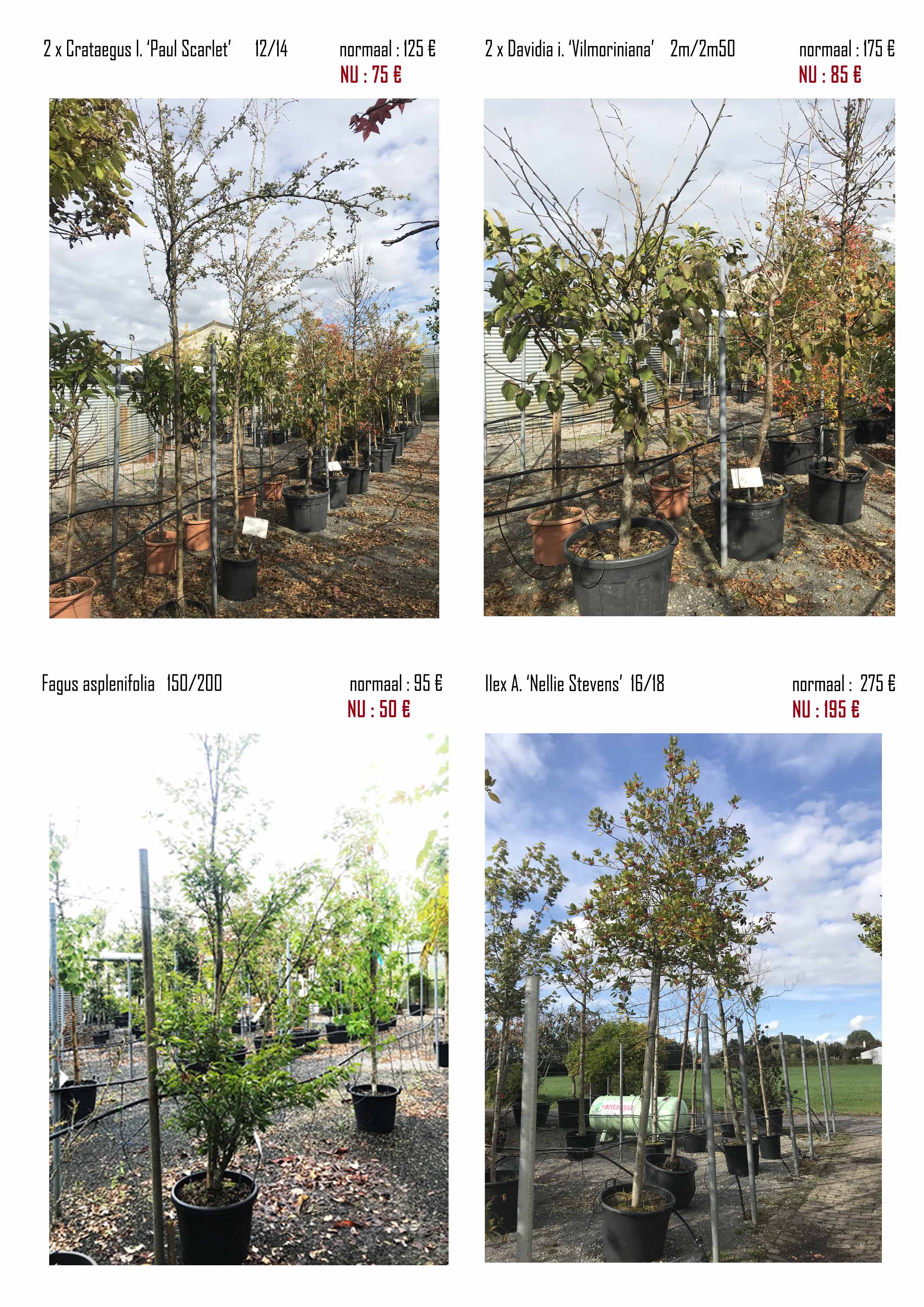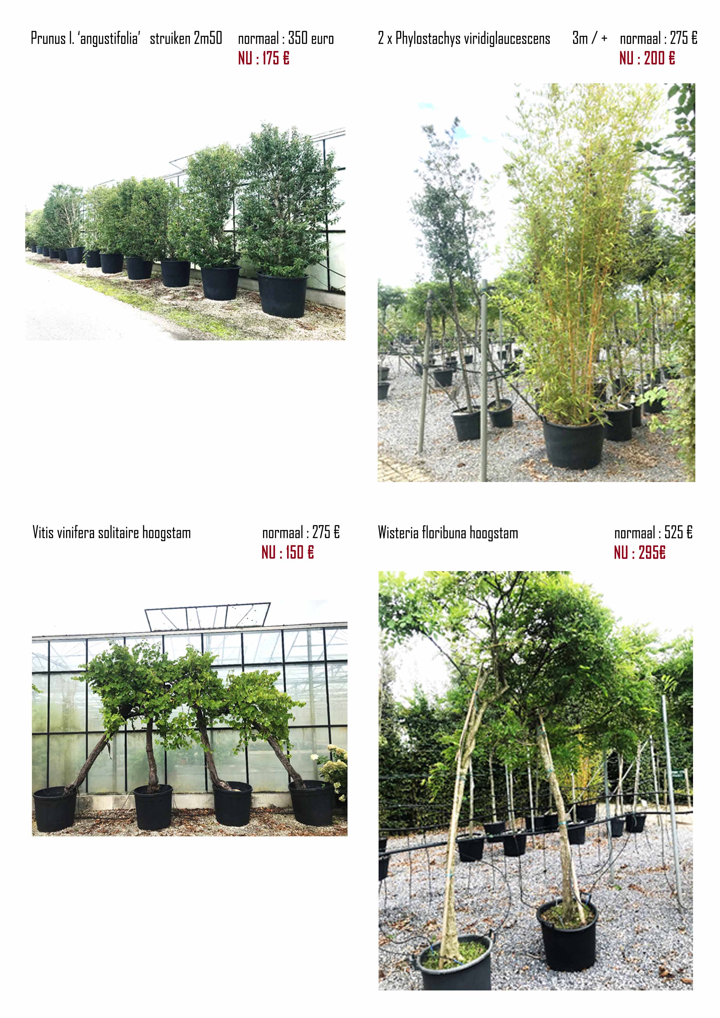 Sommige planten MOETEN WEG! Daarom organiseren wij een stockverkoop waar veel interessante planten aan zeer voordelige prijzen te koop worden gezet! Hieronder kunt u ons aanbod met foto’s en prijzen vinden. (AF kwekerij)